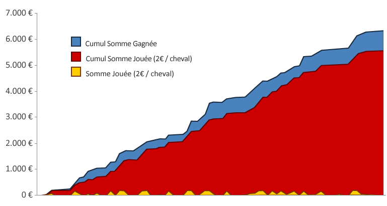 | Mise constante par cheval | 10 € |